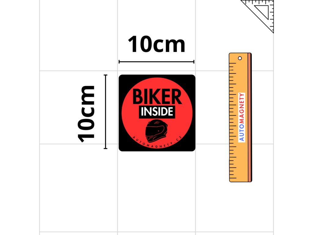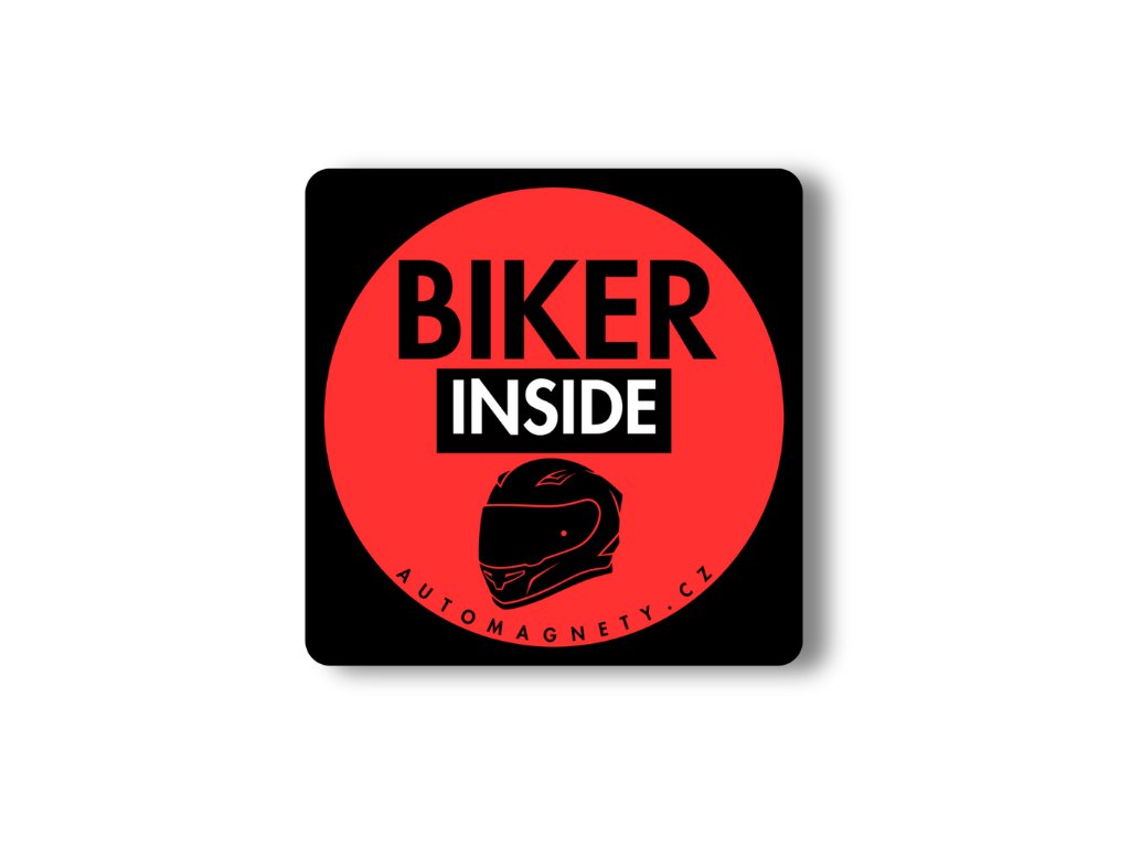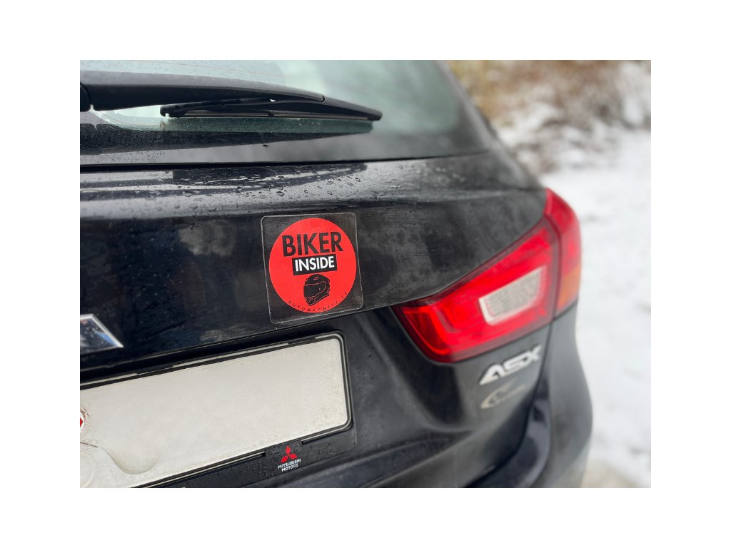 BIKER INSIDE je výrazný magnet na auto, který okamžitě dá ostatním vědět, že za volantem nebo v autě sedí motorkář. Jednoduchý, čistý a přitom maximálně úderný design s helmou v červeném kruhu přitáhne pozornost během vteřiny.
