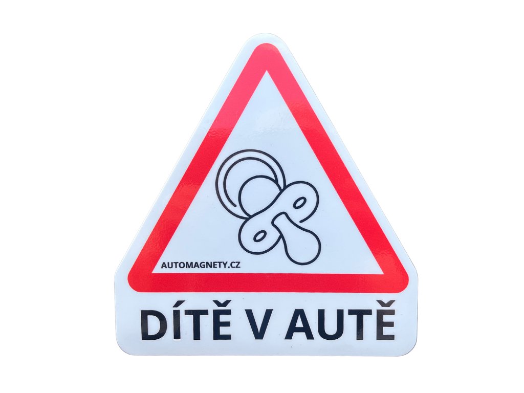 Automagnet „DÍTĚ V AUTĚ“ je dobře viditelná magnetická značka, která upozorní ostatní řidiče, že ve voze cestuje dítě. Díky výraznému trojúhelníkovému designu, odolnému materiálu a silnému magnetu chrání vaše nejmenší i při delších cestách.